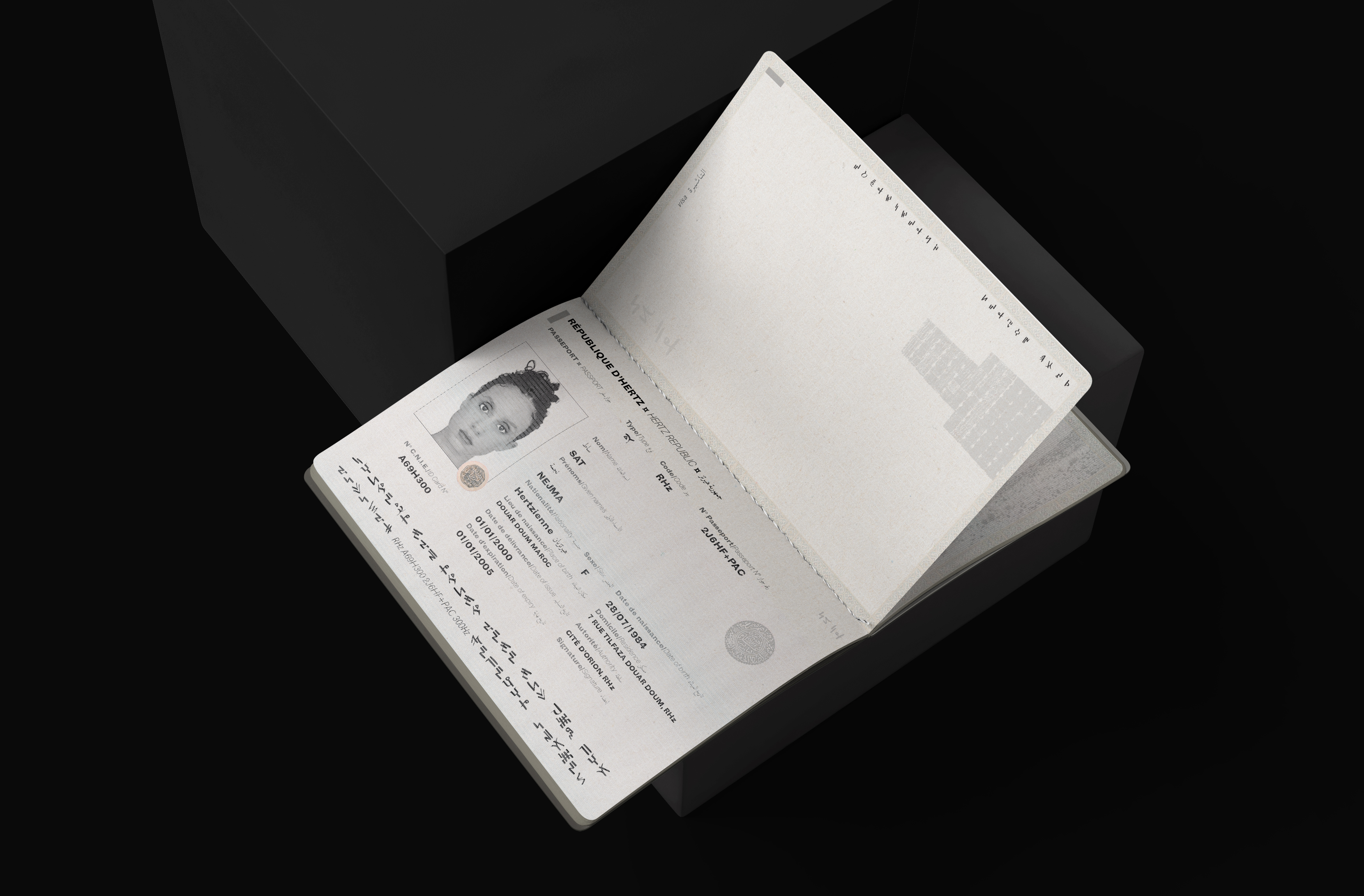 One of the fundament of my reflection being that the sky is our common roof, but that paradoxically, the terrestrial borders prevent us from being at home. In the current context of immigration, it seemed wise to me to ask this question around the passport which, depending on the country, does not have the same power. The Hertzian Republic and its passport, a metaphor for Morocco, symbolizes hope, dreams, ambition, exile and the power of rootedness.