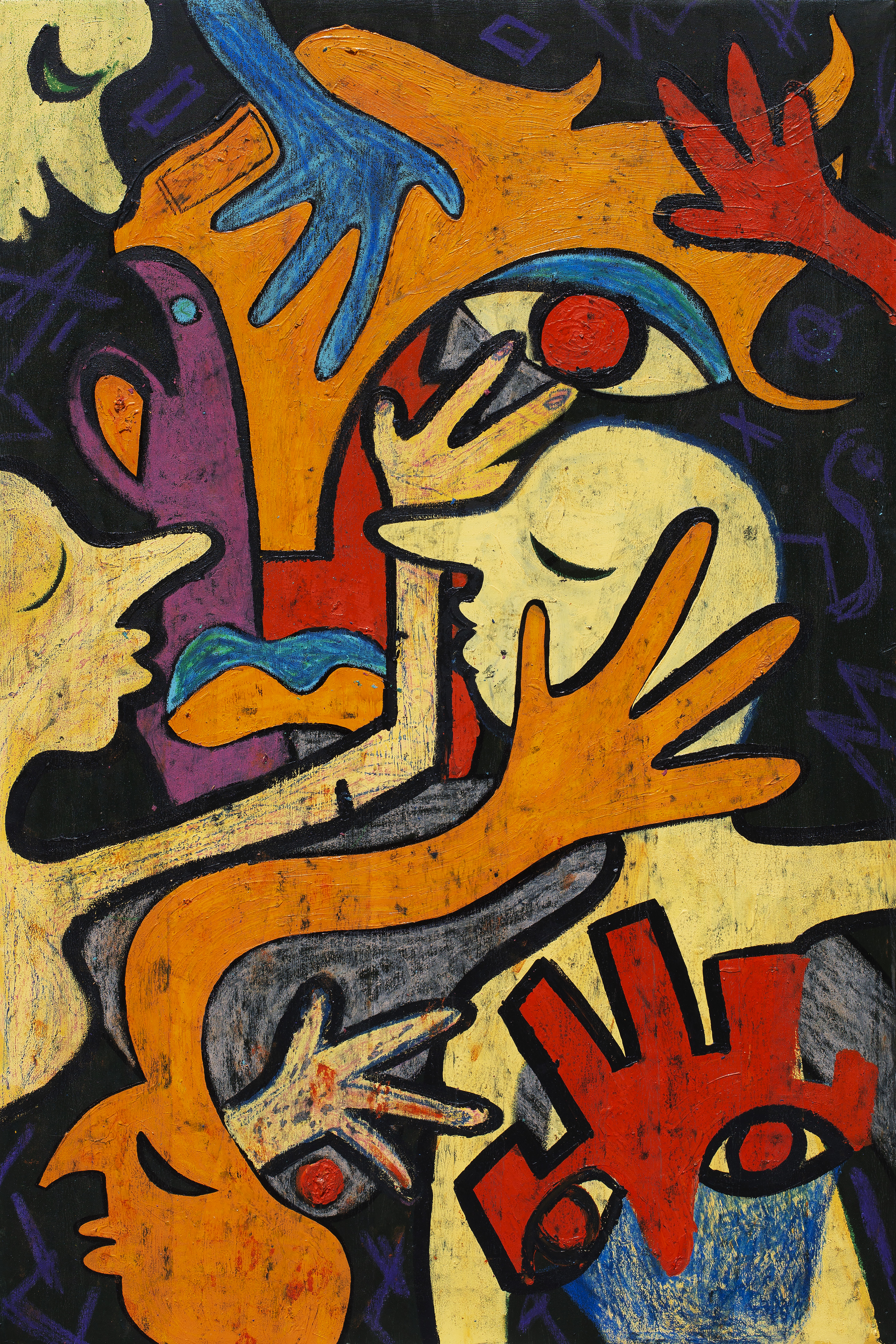 A travers cette exposition, je souhaite plonger le spectateur dans un monde qui va vite, ou beaucoup de choses se passent, une vie opposée à l’autarcie, une vie jamais seule, jamais sans les autres. Une vie à travers les autres. Osmoses est une ode à la vie, à l’organique, la couleur, la lumière et l’accumulation. Une réponse à l’accident.